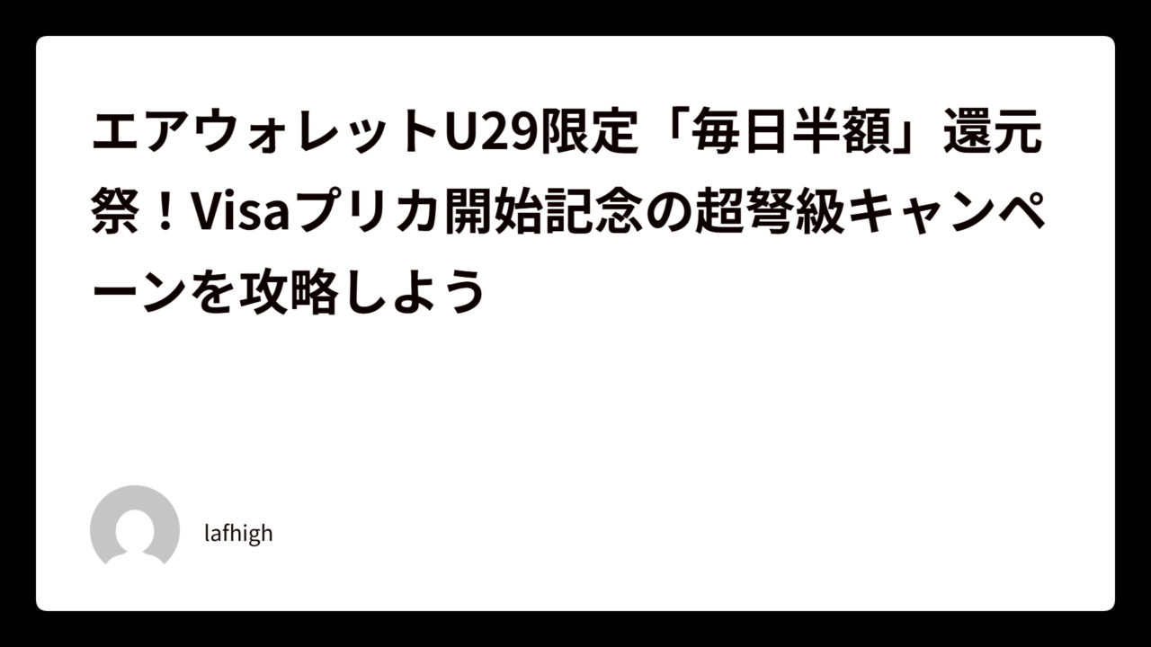 エアウォレットU29限定「毎日半額」還元祭!Visaプリカ開始記念の超弩級キャンペーンを攻略しよう