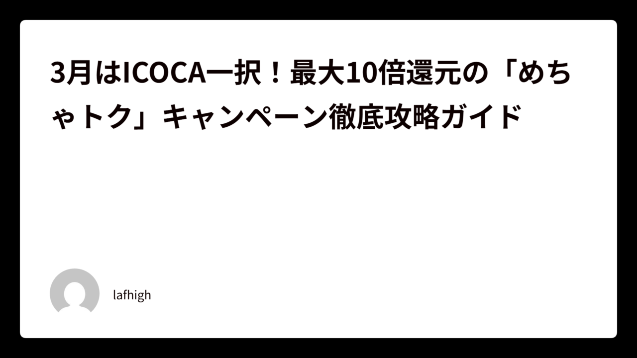 3月はICOCA一択!最大10倍還元の「めちゃトク」キャンペーン徹底攻略ガイド