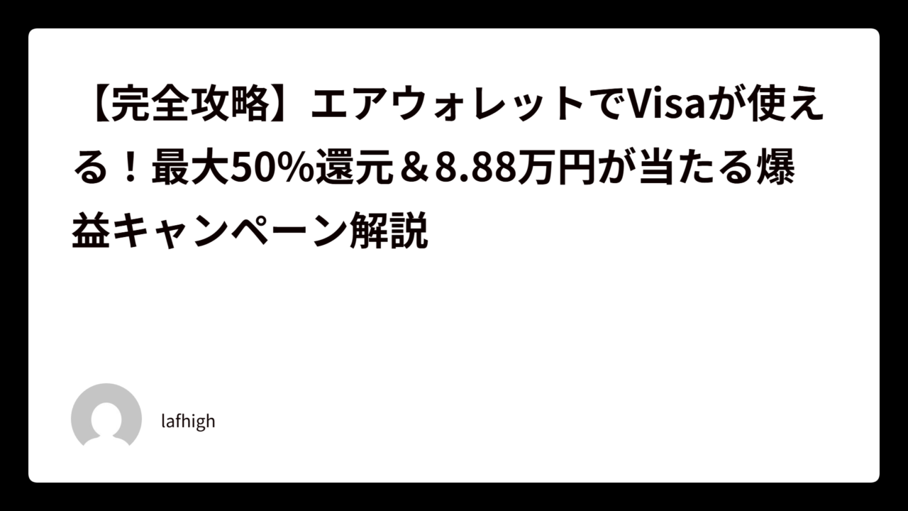 【完全攻略】エアウォレットでVisaが使える!最大50%還元&8.88万円が当たる爆益キャンペーン解説
