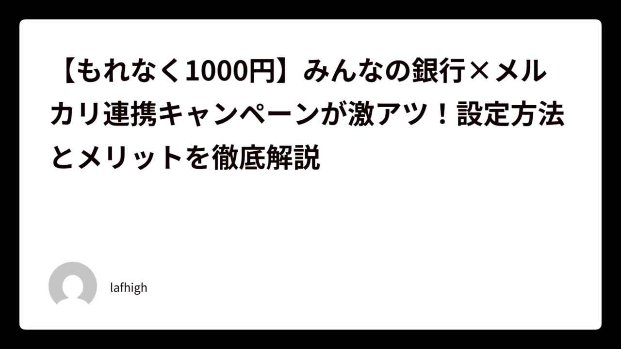 【もれなく1000円】みんなの銀行×メルカリ連携キャンペーンが激アツ!設定方法とメリットを徹底解説