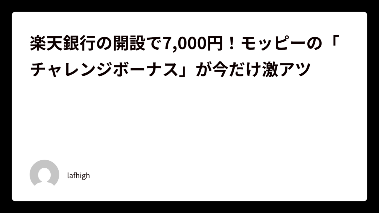 楽天銀行の開設で7,000円!モッピーの「チャレンジボーナス」が今だけ激アツ