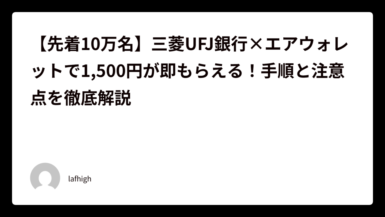 【先着10万名】三菱UFJ銀行×エアウォレットで1,500円が即もらえる!手順と注意点を徹底解説