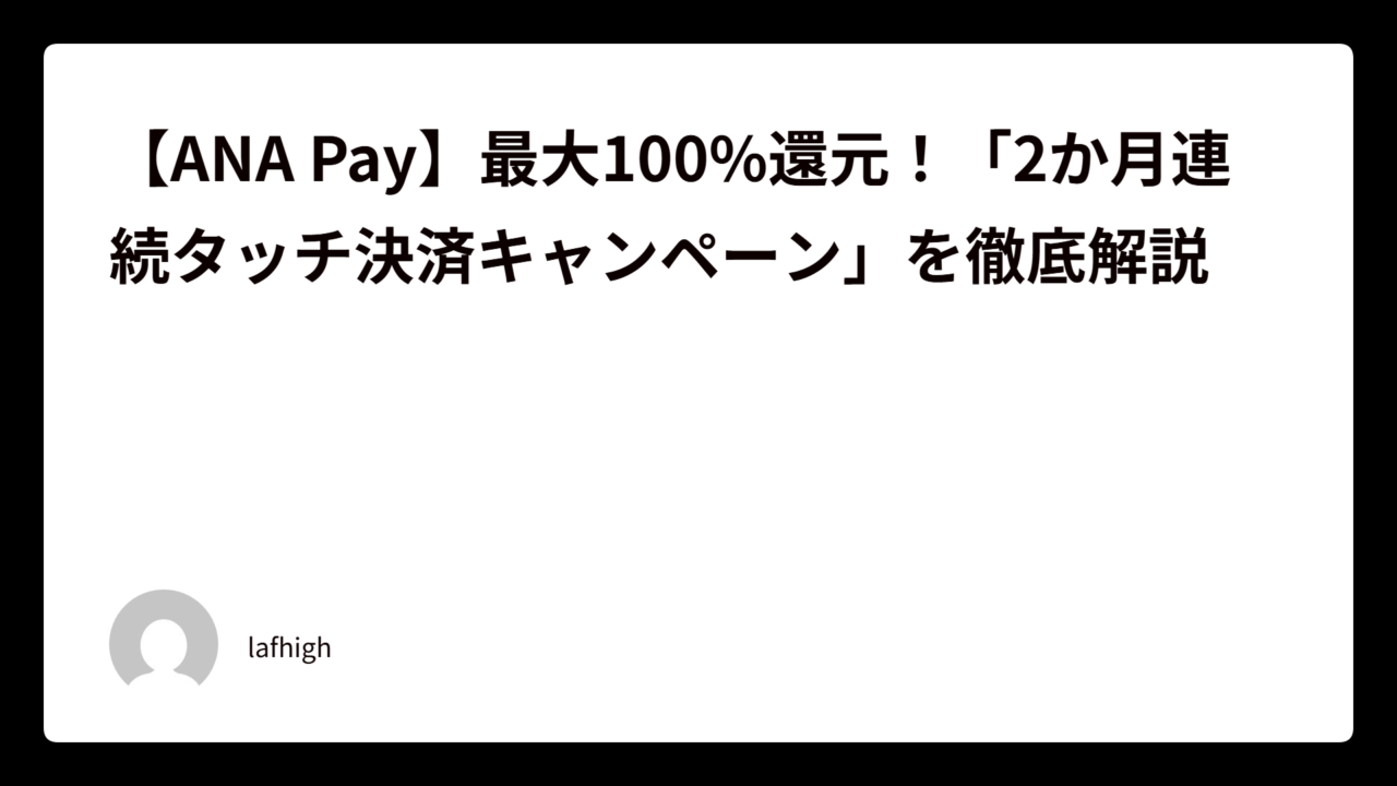 【ANA Pay】最大100%還元!「2か月連続タッチ決済キャンペーン」を徹底解説