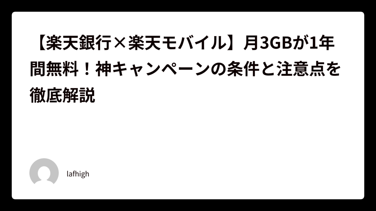 【楽天銀行×楽天モバイル】月3GBが1年間無料!神キャンペーンの条件と注意点を徹底解説