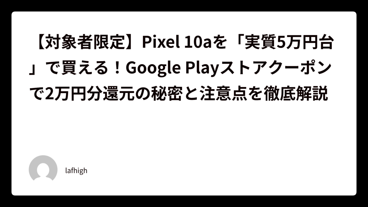 【対象者限定】Pixel 10aを「実質5万円台」で買える!Google Playストアクーポンで2万円分還元の秘密と注意点を徹底解説
