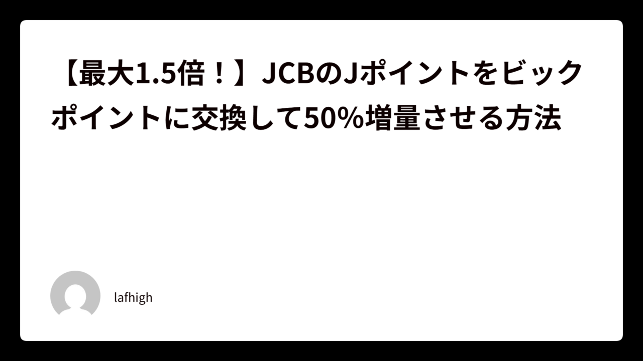 【最大1.5倍!】JCBのJポイントをビックポイントに交換して50%増量させる方法