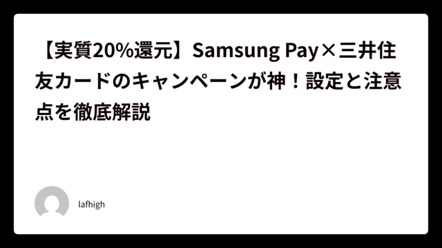 【実質20%還元】Samsung Pay×三井住友カードのキャンペーンが神!設定と注意点を徹底解説