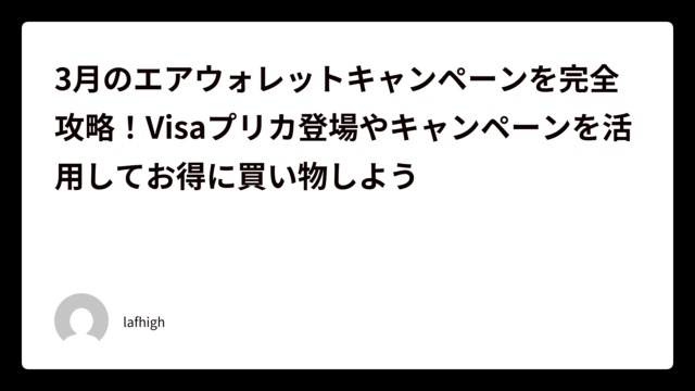 3月のエアウォレットキャンペーンを完全攻略!Visaプリカ登場やキャンペーンを活用してお得に買い物しよう